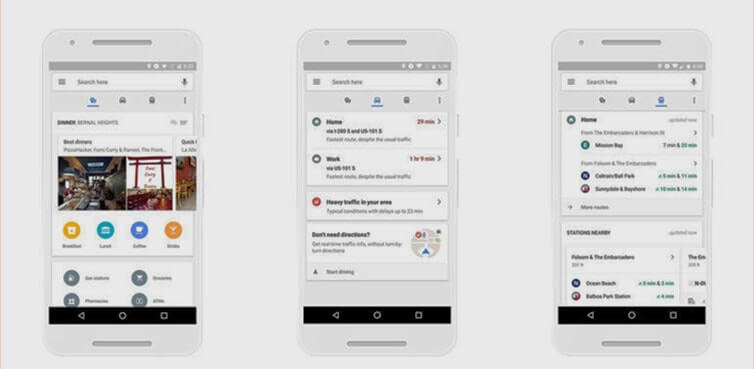 Bu güncellemenin yaptığı birkaç şey var, ancak en dikkat çekici eklemelerden biri, rotayı bildiğiniz zaman bile “Real Time” gidip gelme bilgileri. Google Maps‘e küçük çaplı bir değişiklik yaparak yeni bir alt gezinme çubuğu ekledi. Burada, restoran tavsiyeleri, seyahat süresi evleri ve toplu taşıma bilgileri bulabilirsiniz. Google Maps‘deki Rehber sekmesine dokununca, “en iyi yemekler”, “ucuz yemekler” veya “iş yemekleri” gibi kategorilerle kolayca etiketlenecek restoran ve barların listesini bulabileceksiniz.