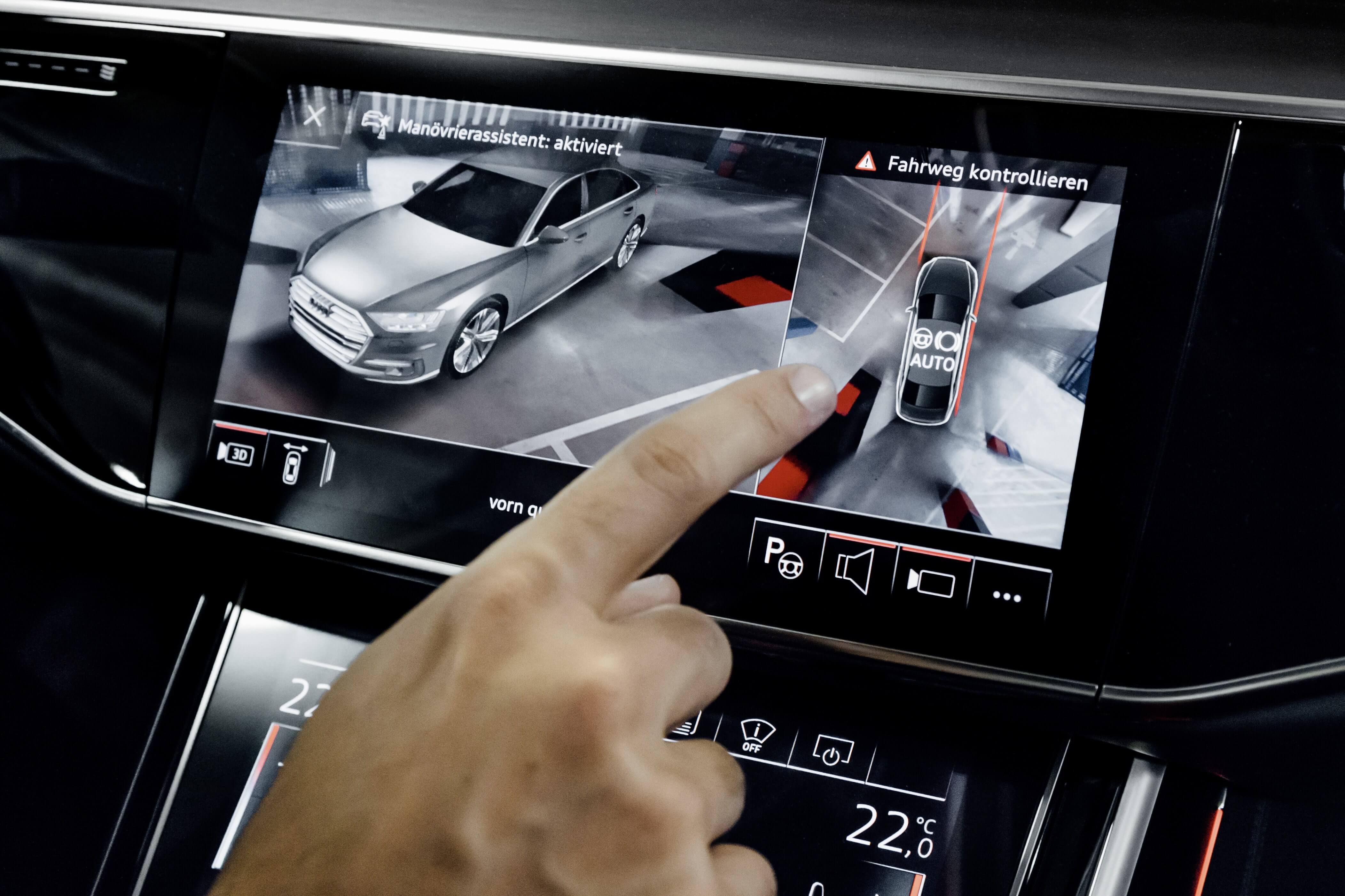 Audi AI uzaktan park pilotu ve Audi AI uzaktan otopark pilotu, A8’in park yeri ve otoparklarda otomatik olarak manevra yapmasını sağlarken, sürücünün tek yapması gereken manevrayı izlemek. Bu sırada otomobilin içinde olmasına dahi gerek yok.